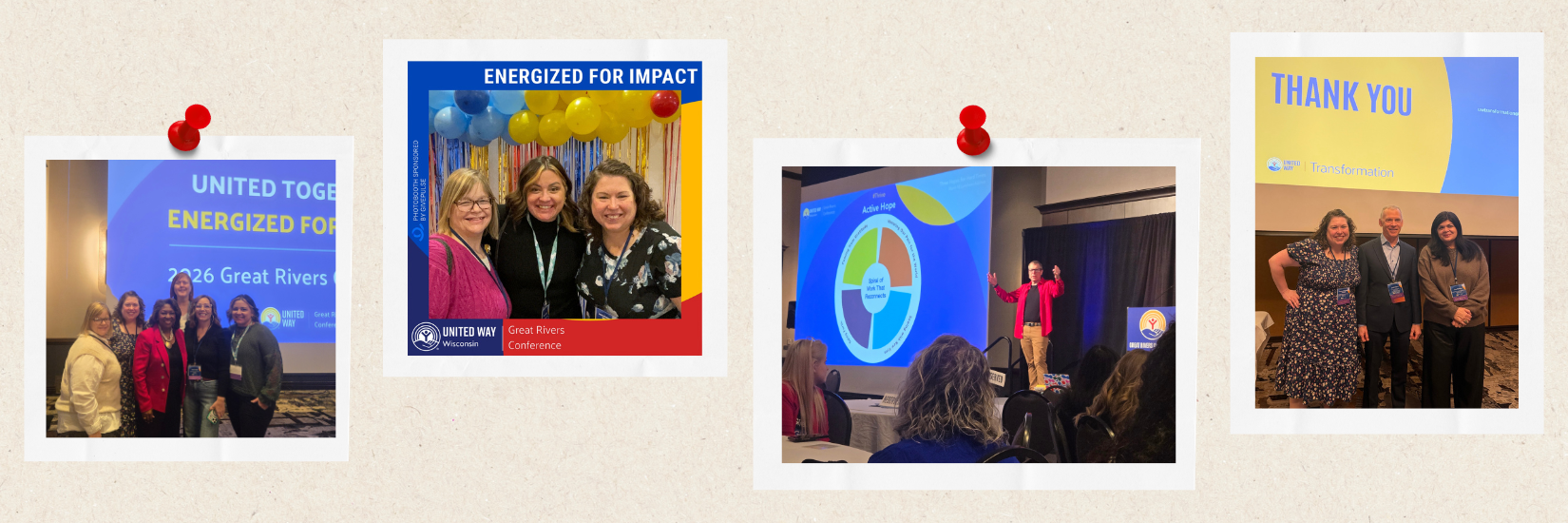 The 2026 conference took place March 17 through 19 in Bloomington-Normal, Illinois in partnership with United Way of Wisconsin. More than 300 United Way professionals from across the 12-state Great Rivers region gathered for dynamic keynotes, dozens of breakout sessions, and plenty of opportunities to connect with colleagues from across the network.